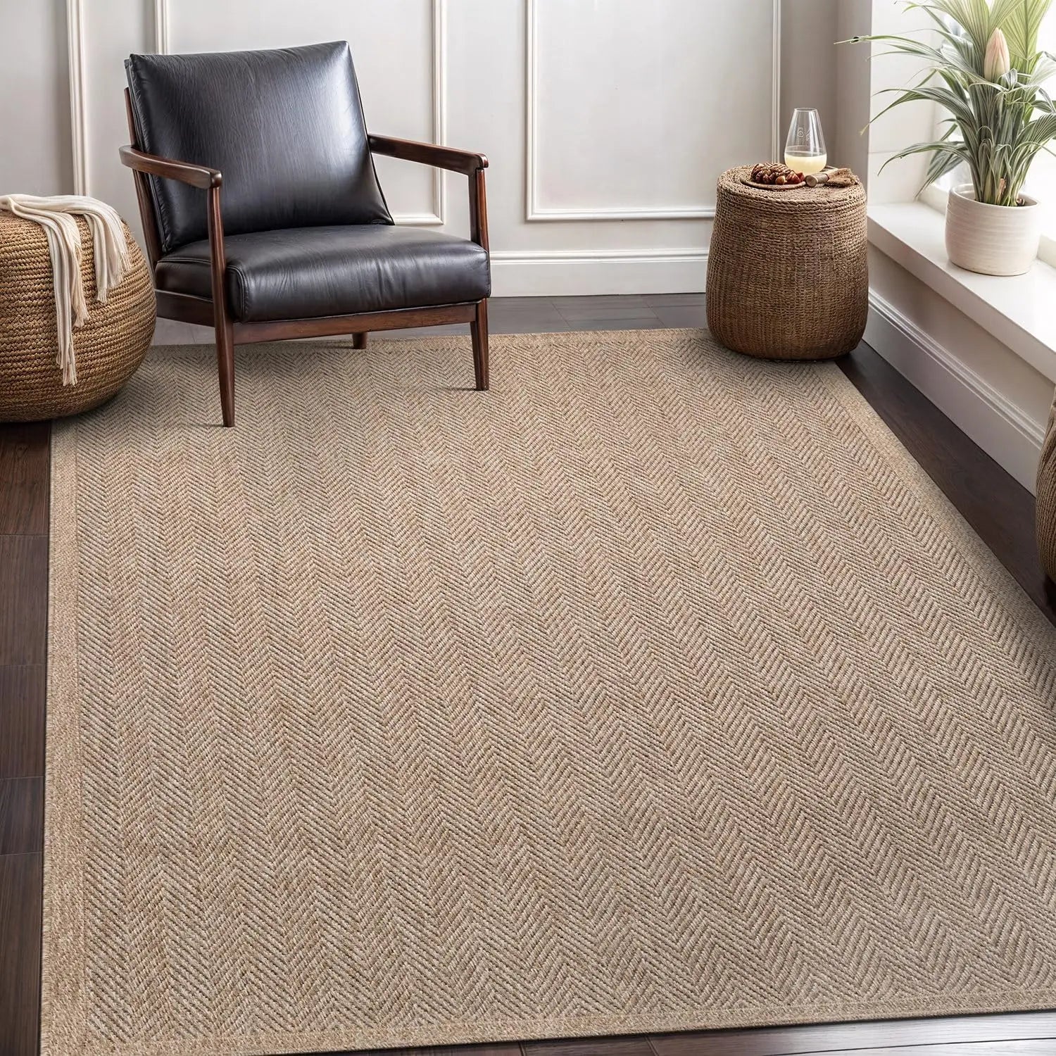 Indoor Outdoor Seagrass Herringbone Rug for Living Room and Patio